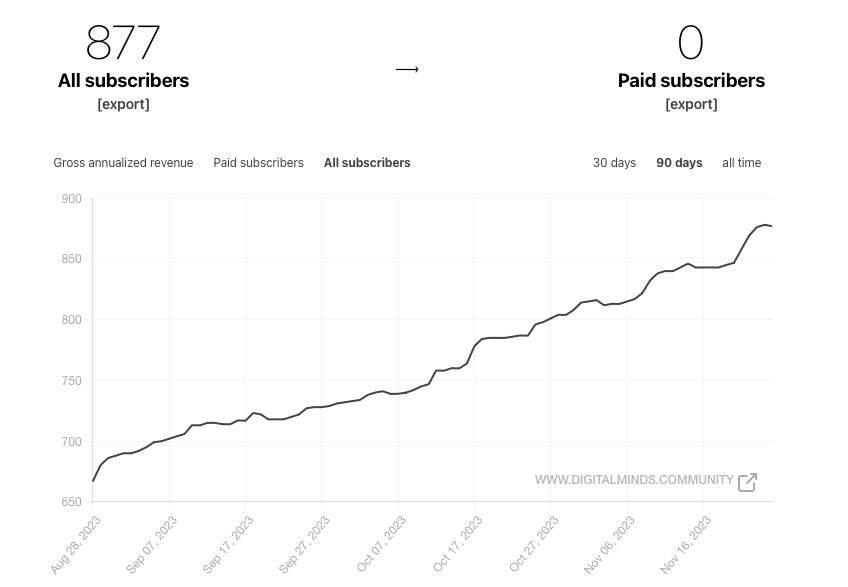 Digital Minds bültenine kayıtlı kişi sayısı bugün itibari ile 877. Farklı zamanlarda etkinliklere katılan kişi sayısı 200’ün üzerinde. İstanbul’da etkinliklere 40-60 kişi katılıyor. Ankara’da ise 30-40 kişi. Yavaş yavaş yeni insanlar topluluğa katılıyor ve topluluk genişliyor.